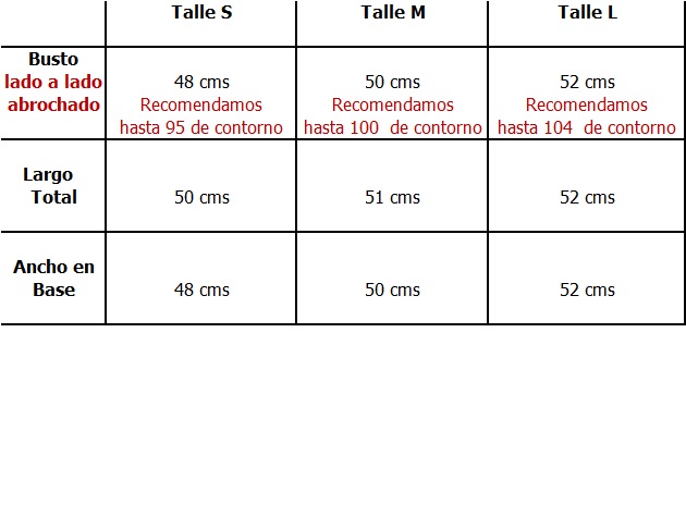 Medidas apróximadas de lado a lado y sugerencua de talle