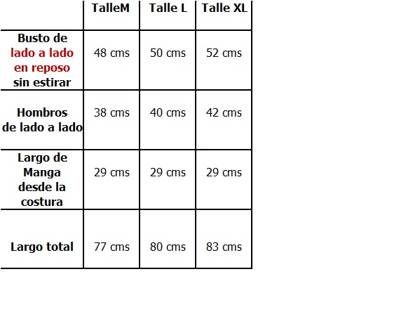 La de la foto es talle M. Es el talle más chico. De corte amplio y generoso