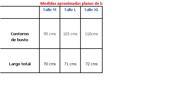 El de la foto es talle M. Es el talle mas chico. De corte amplio y generoso. A Paola le queda sueltito