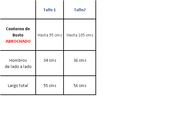 Busto 90 cms, cadera 96 cms, altura 1.63 cms