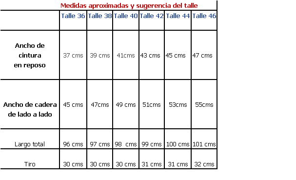 Medidas y sugerencia del talle