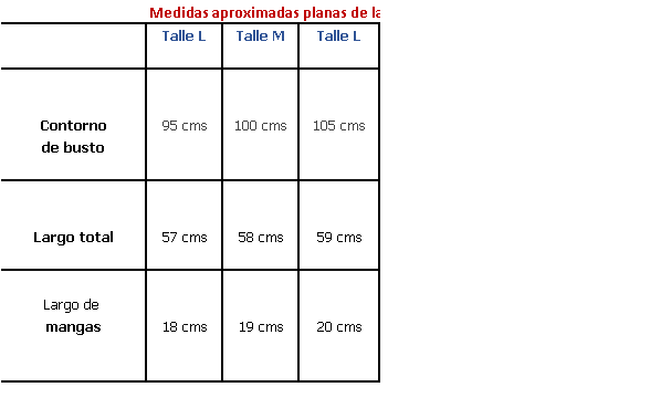 Medidas de Paola para tomar como referencia.Busto 90 cms, cadera 96 mcs, altura 1.63 ms